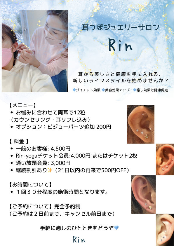 耳ツボ ビジュー (30分):おしゃれで癒し効果もあるケアを提供。